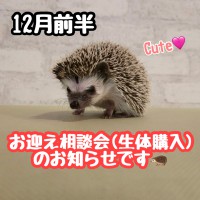 12月前半(1日~15日)のハリネズミさんお迎え(生体購入)相談会の開催予定日です<参加費無料>👶🦔【開催日時】《土曜・日曜・祝日》①11:15~・②16:00~《平日》①13:00~12/4(木)・10(水)11(木)・12(金)は...