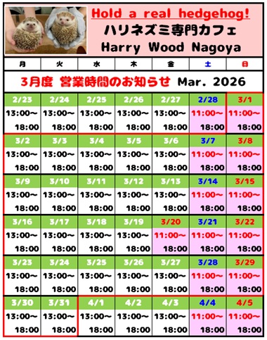 💁🏻♀️3月の営業時間のお知らせ🦔